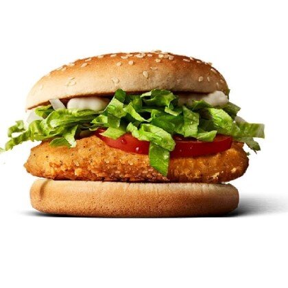Булочка с кунжутом, котлета из говядины, ломтик сыра чеддер, огурчики солёные, красный лук, кетчуп, горчица.